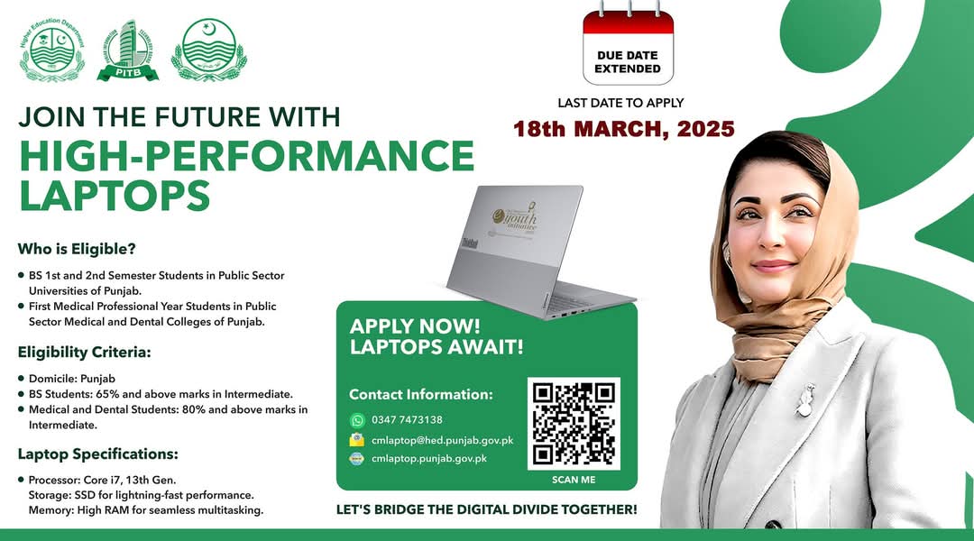 CM LAPTOP PROGRAM 2025, Date extended till 18 March,2025